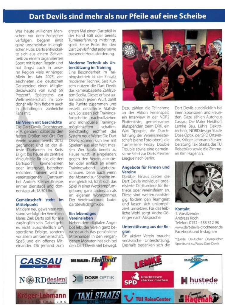 Am Freitag, den 07.11.2025 hatten die Dart-Devils Drochtersen den SPD-Ortsverein zu Gast. Romeo Kunkel und Andreas Koch begleiteten den Abend im Rahmen eines Schleifchen-Darttuniers. Bei allen Teilnehmern stellte sich schnell Begeisterung, Spaß und auch ein wenig Ehrgeiz ein. Es wurde mindestens genau so viel gelacht, wie um die „Schleifchen“ gekämpft. Für das leibliche Wohl sorgte unser Wirt Andre Göringer mit seinem Team (Dank an Jessica) und wir haben einen schönen Abend verbracht und tolle Gespräche geführt. Gerne und jederzeit wieder!